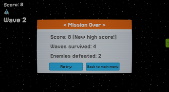 The controls feel unwieldly and getting hit spins the ship which makes it harder. A bug I found was that the S key doesn't work but the down arrow key does. I also can't tell what's causing the waves to progress and when it's doing so.